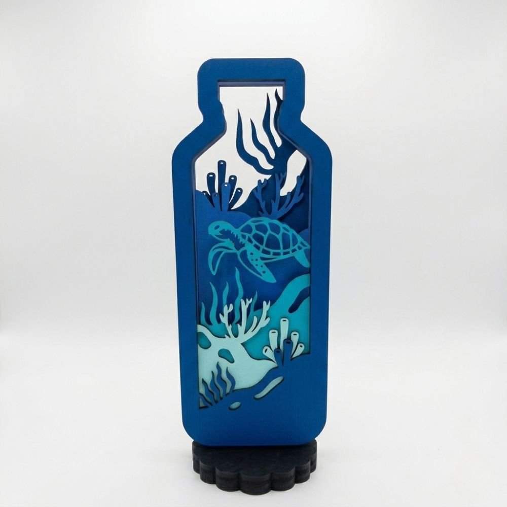 Expertly made from multilayer plywood, each layer is precision-cut and carefully assembled to create depth and dimension. The hand-painted finish enhances every detail, giving the turtle a vibrant yet soothing character. When illuminated, the soft LED glow shines through the layered design, highlighting the intricate shapes and creating a warm, tranquil effect.