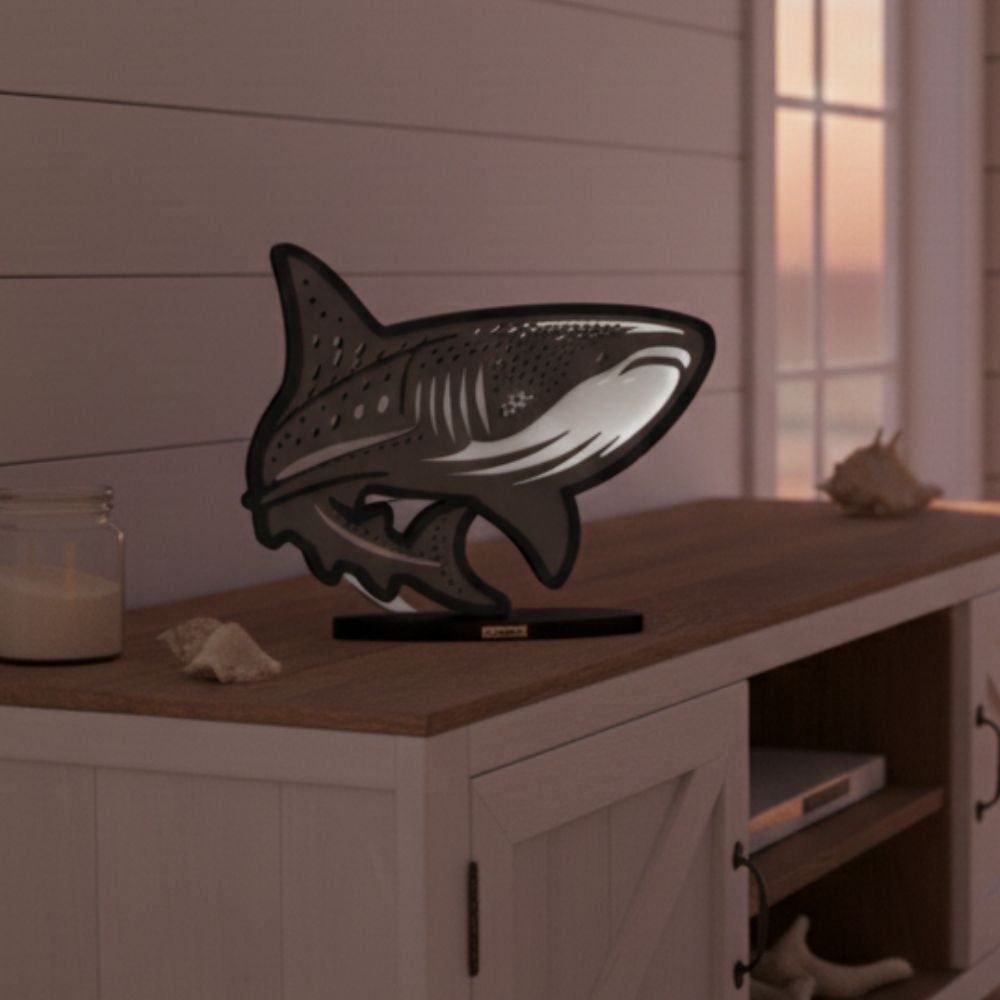 Bring the majestic beauty of the ocean into your home with the Vibeartz Whale Shark LED Art Lamp. This unique piece seamlessly blends modern coastal style with practical lighting, making it a perfect statement for any beach house, nautical-themed room, or contemporary living space.