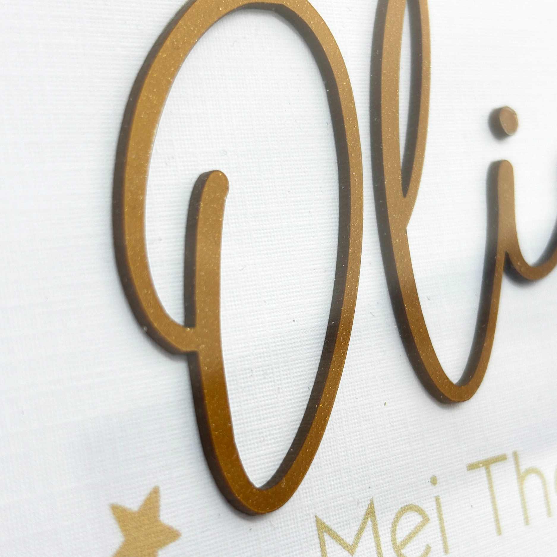 Celebrate the arrival of a little one with this stunning 3D personalised birth print, featuring all the essential birth details and elegant laser-cut acrylic mirror accents that add a unique, eye-catching touch.