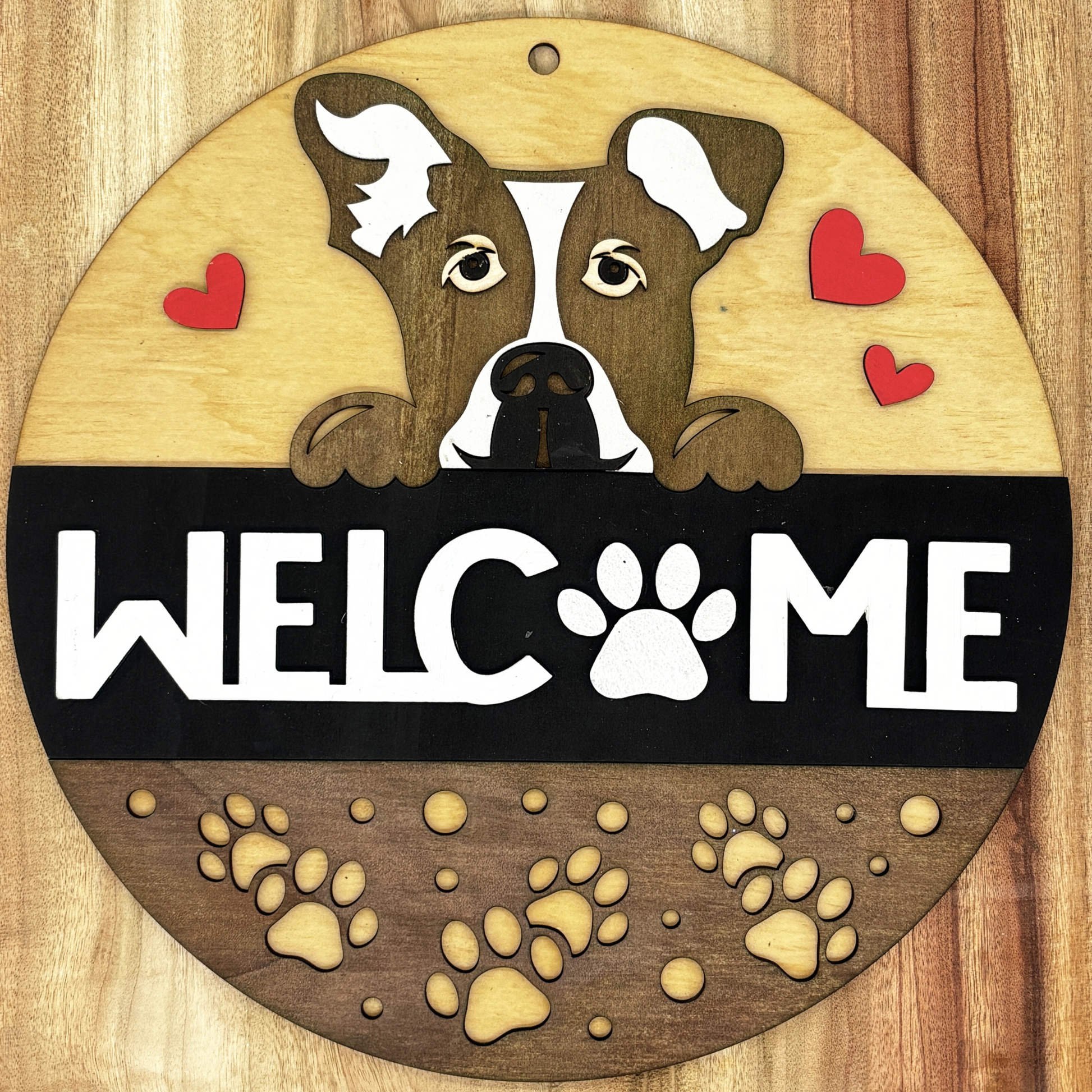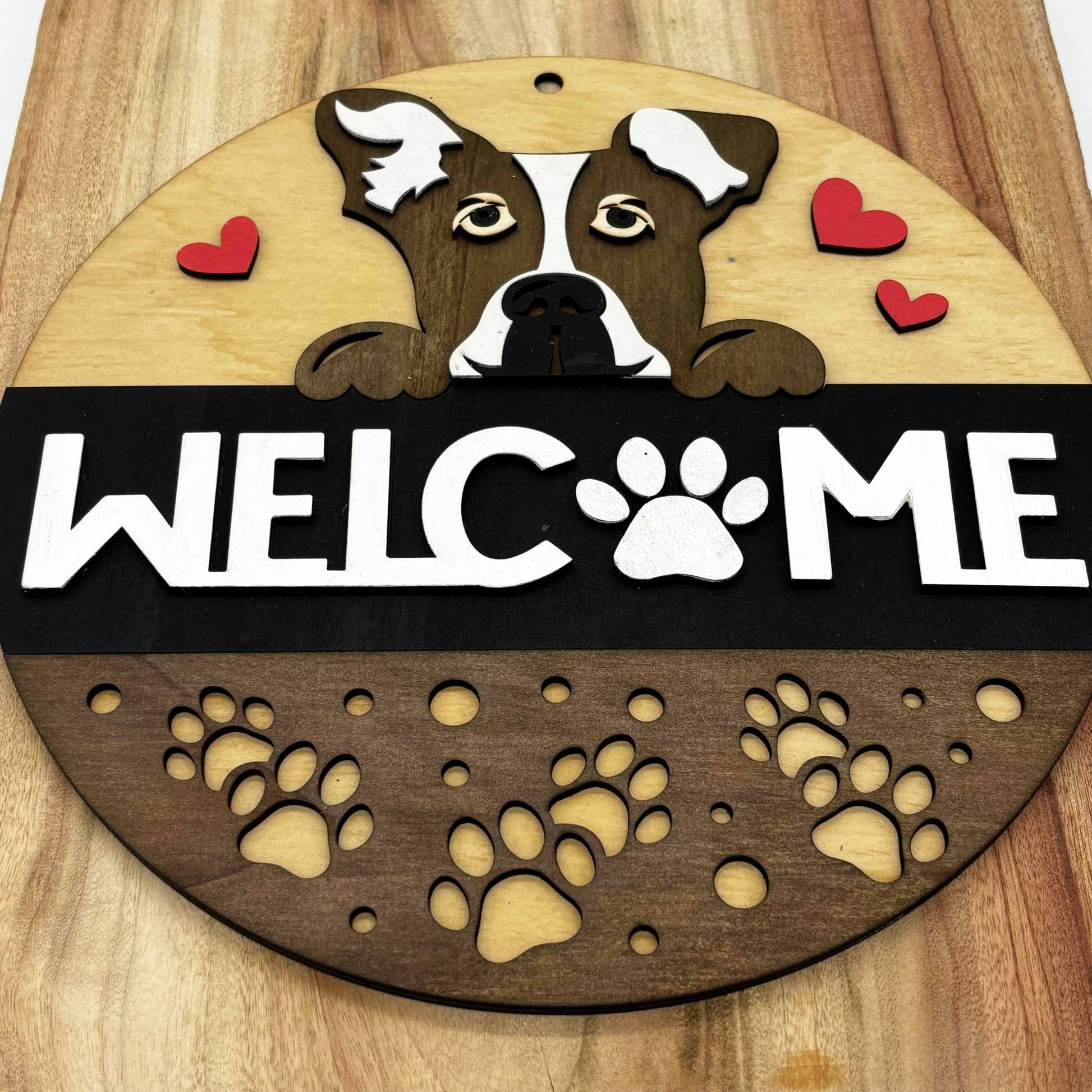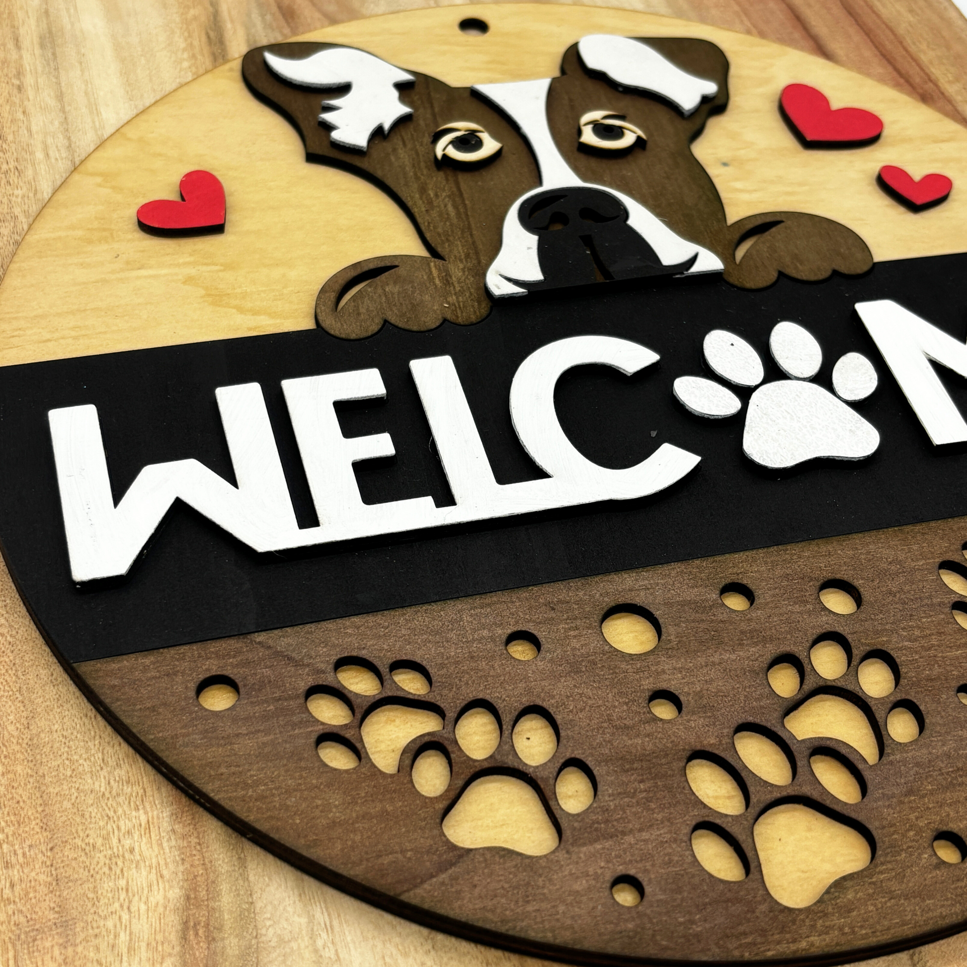Handcrafted Dog-Themed Welcome Sign – Multilayered Wooden Decor