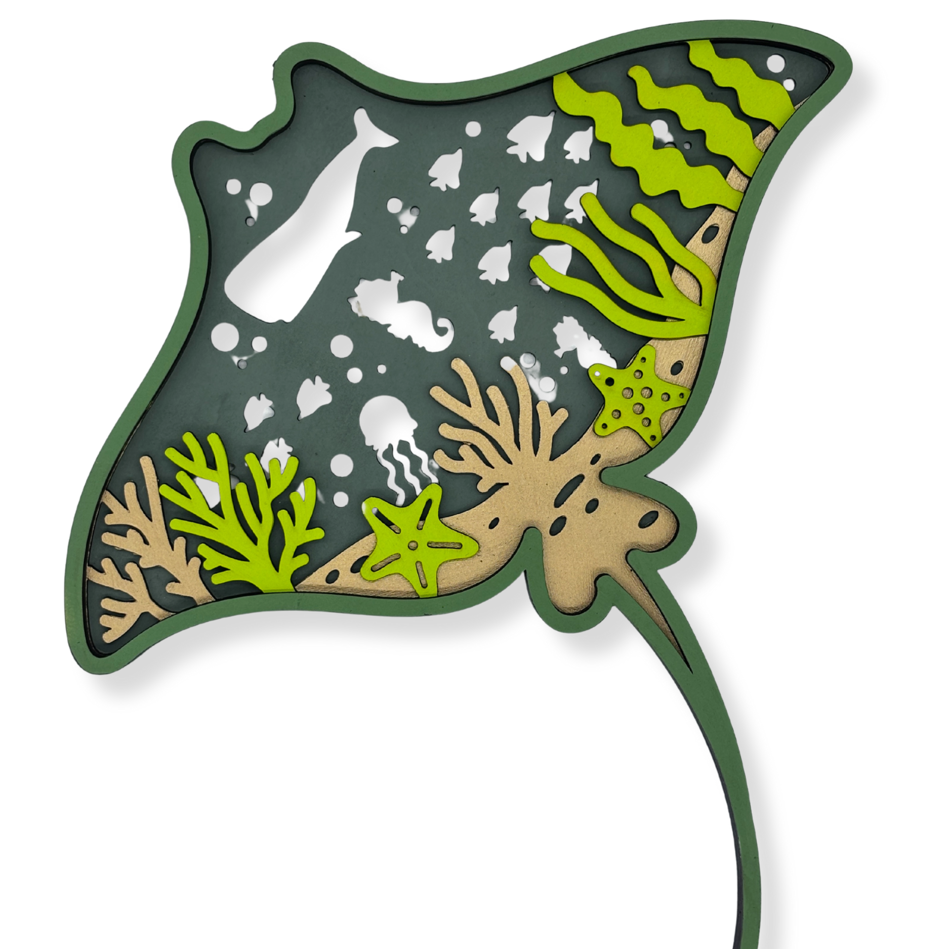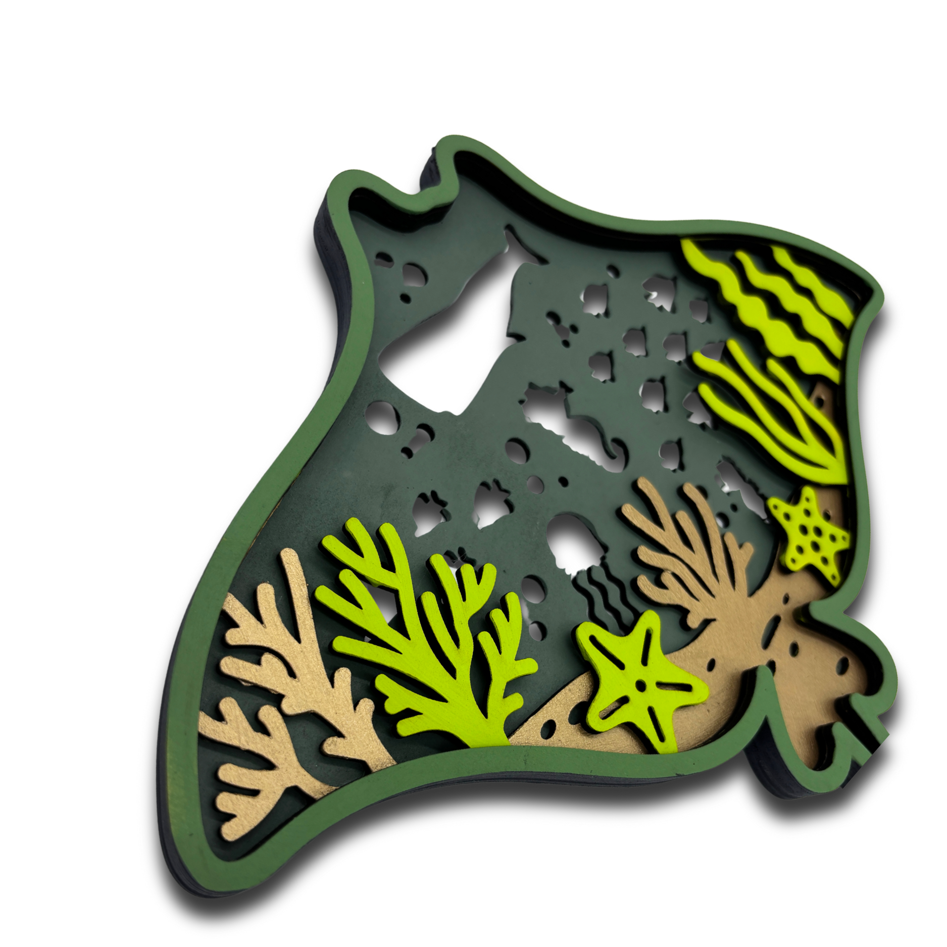 Dive into the magic of the sea with our beautifully crafted Manta Ray Ocean Scene Wall Art! This unique, multi-layered design showcases an enchanting underwater world—all within the graceful silhouette of a manta ray. Featuring intricate coral reefs, vibrant sea plants, jellyfish, dolphins, seahorses, and a school of fish, this piece brings the ocean to life right on your wall.