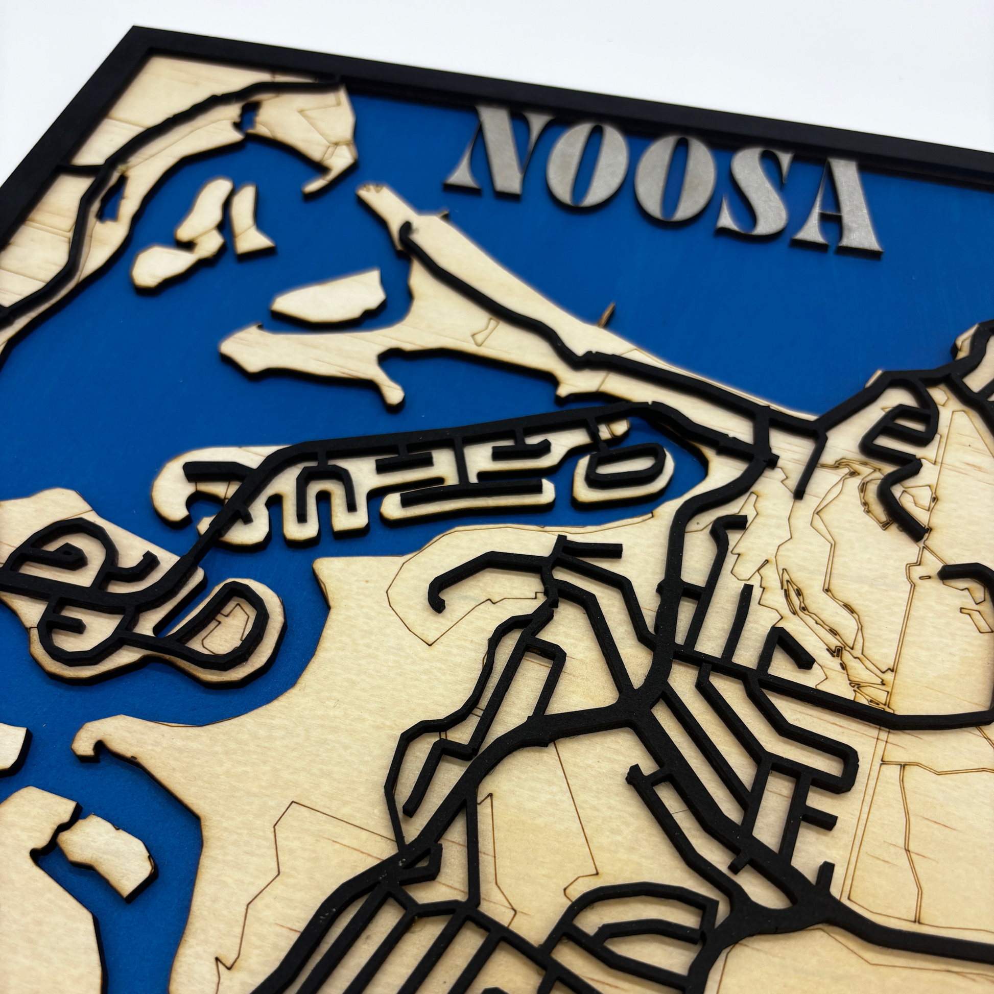 Noosa Wooden Map Wall Art – Handcrafted 3D Layered Design