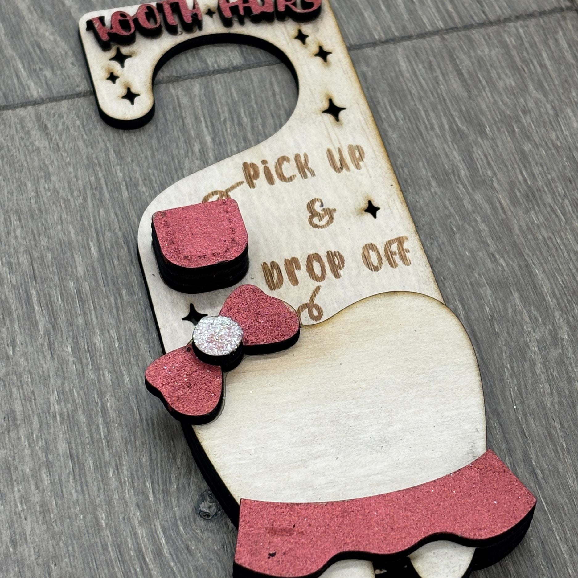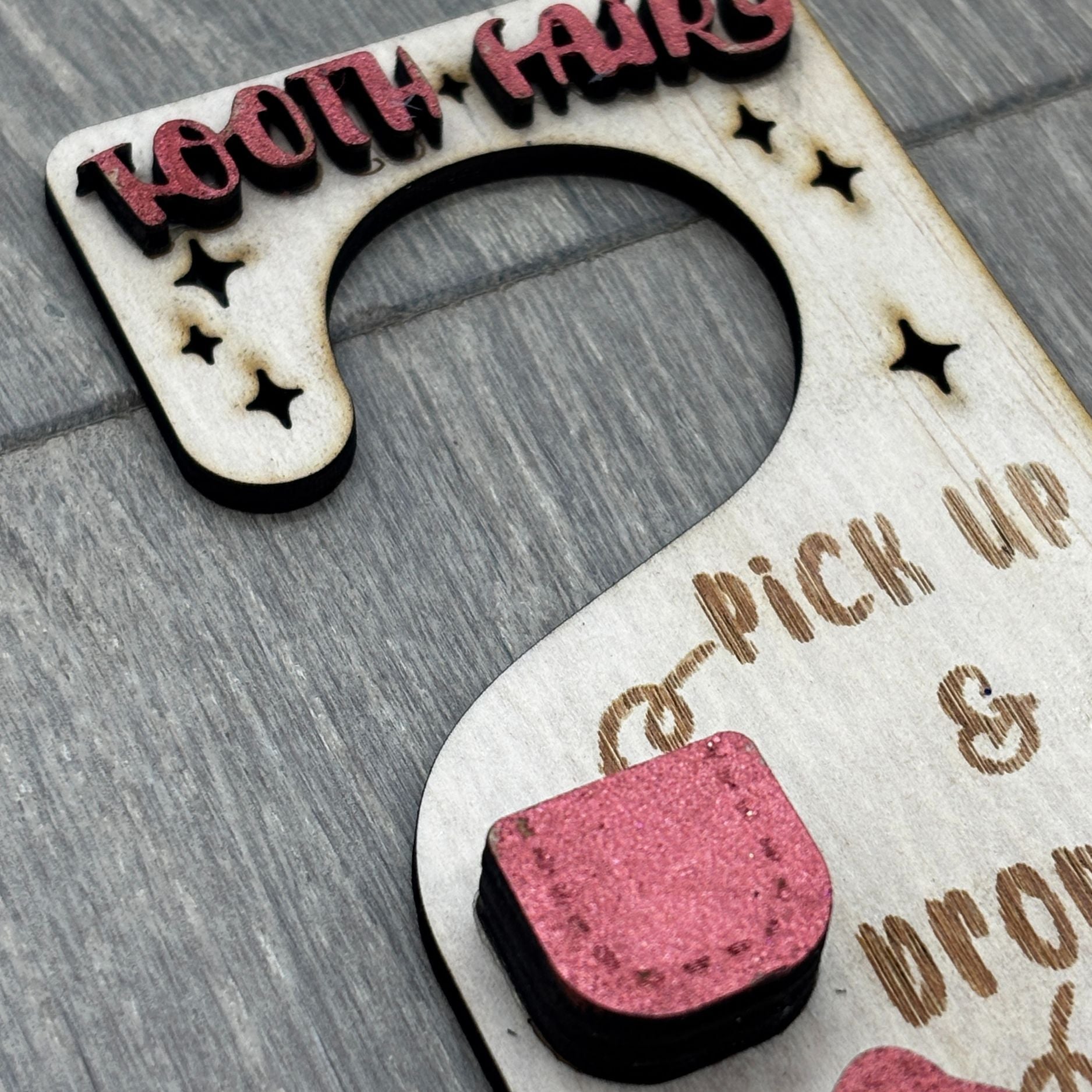 ✨ Available in multiple fun designs, each hanger is handcrafted with attention to detail, laser-engraved, and features a small slot to securely hold the precious tooth, ready for the fairy's visit.
