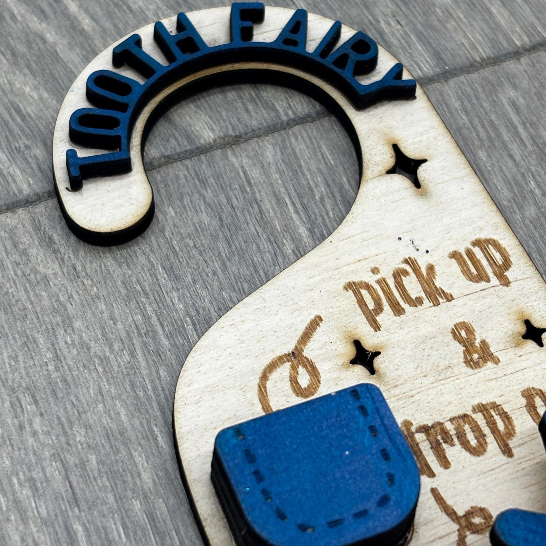✨ Available in multiple fun designs, each hanger is handcrafted with attention to detail, laser-engraved, and features a small slot to securely hold the precious tooth, ready for the fairy's visit.