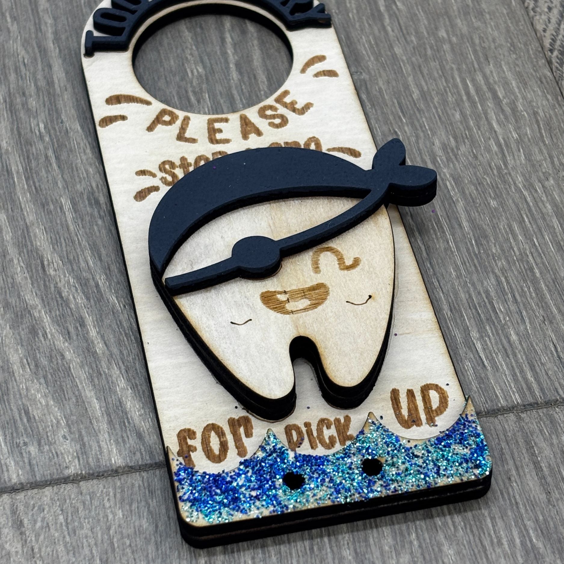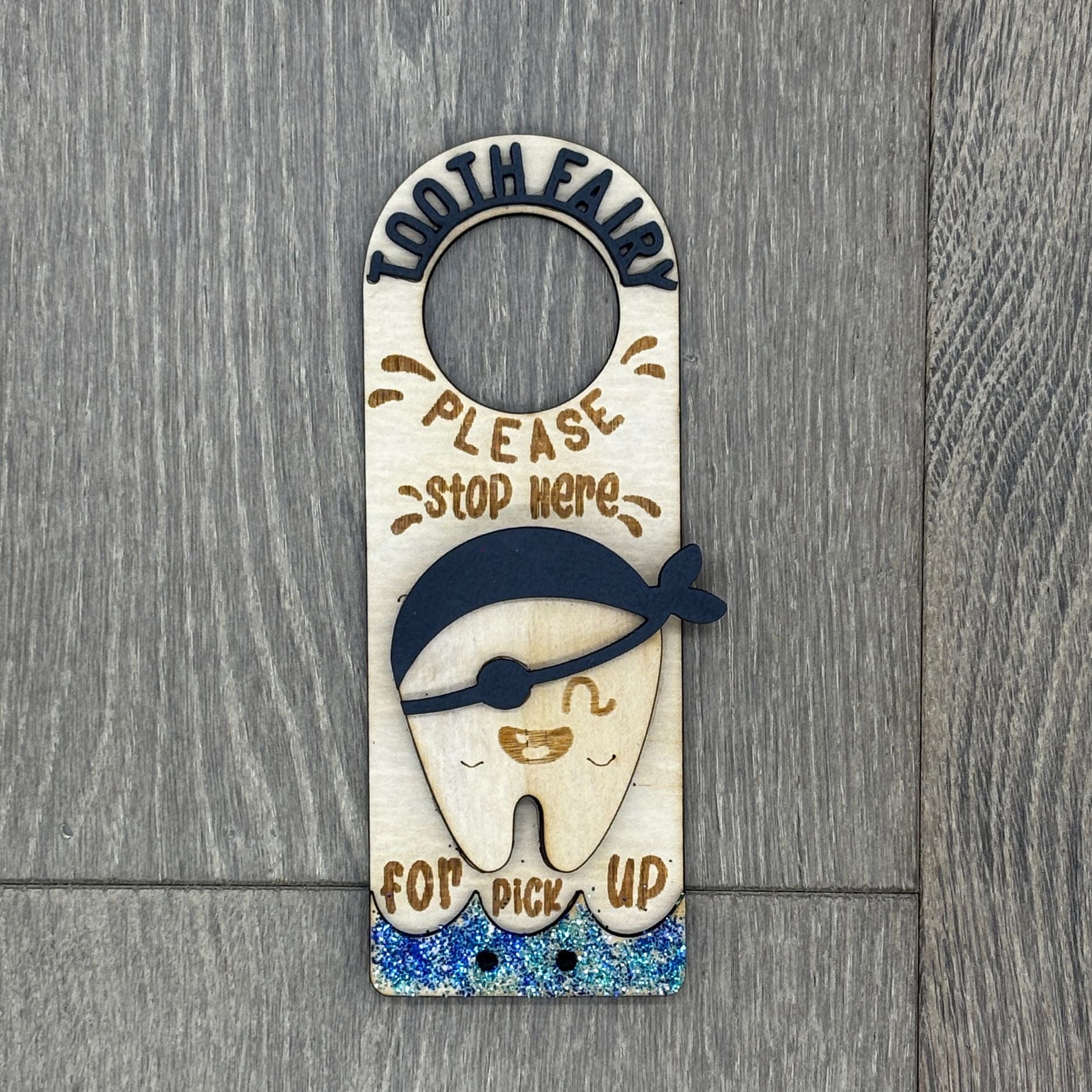 Make those magical childhood moments unforgettable with our charming Tooth Fairy Door Hangers! Designed to bring excitement and wonder, this adorable wooden door sign lets the Tooth Fairy know exactly where to stop for their important nightly pickup. With a fun and playful design—like this cheeky pirate tooth!—it’s sure to become a favorite keepsake.