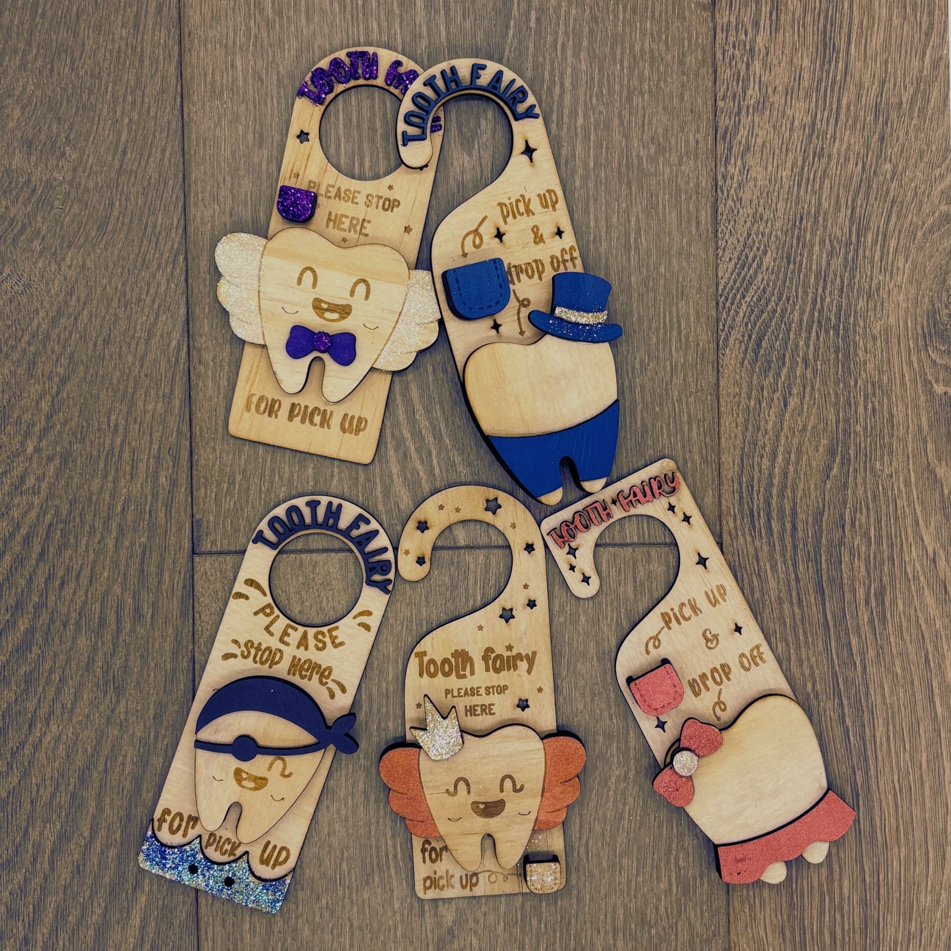 ✨ Available in multiple fun designs, each hanger is handcrafted with attention to detail, laser-engraved, and features a small slot to securely hold the precious tooth, ready for the fairy's visit.
