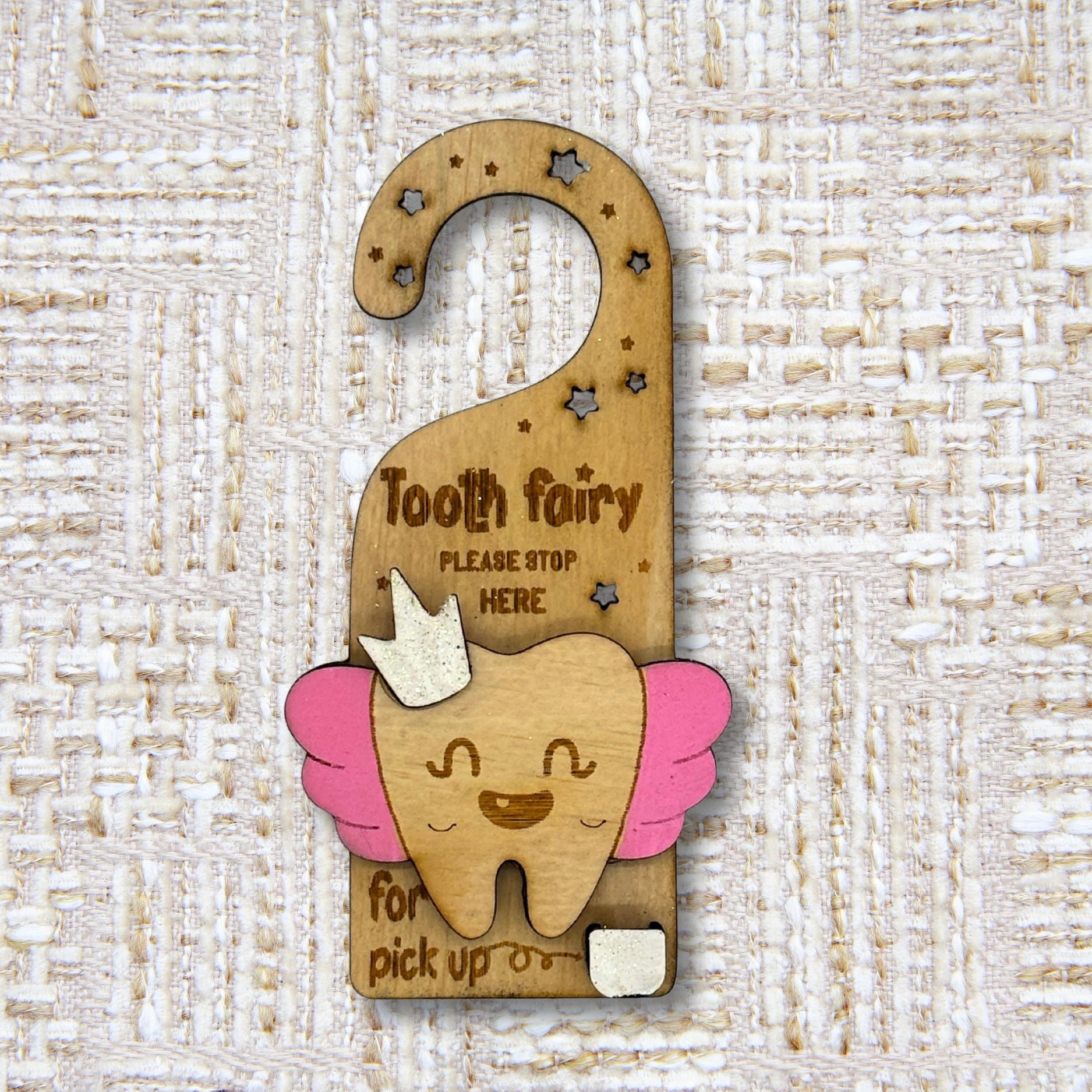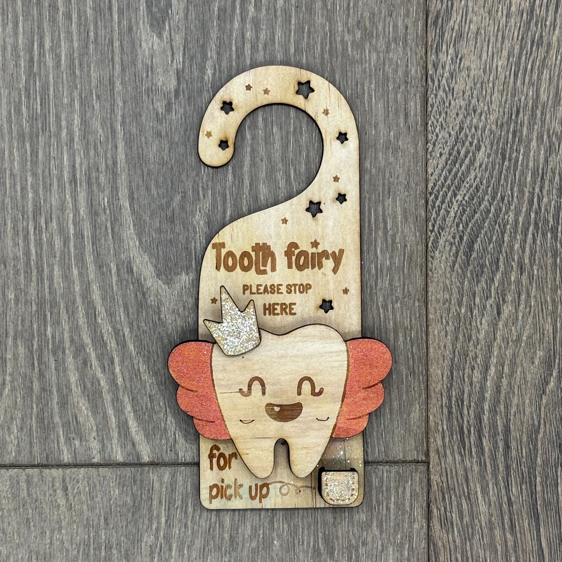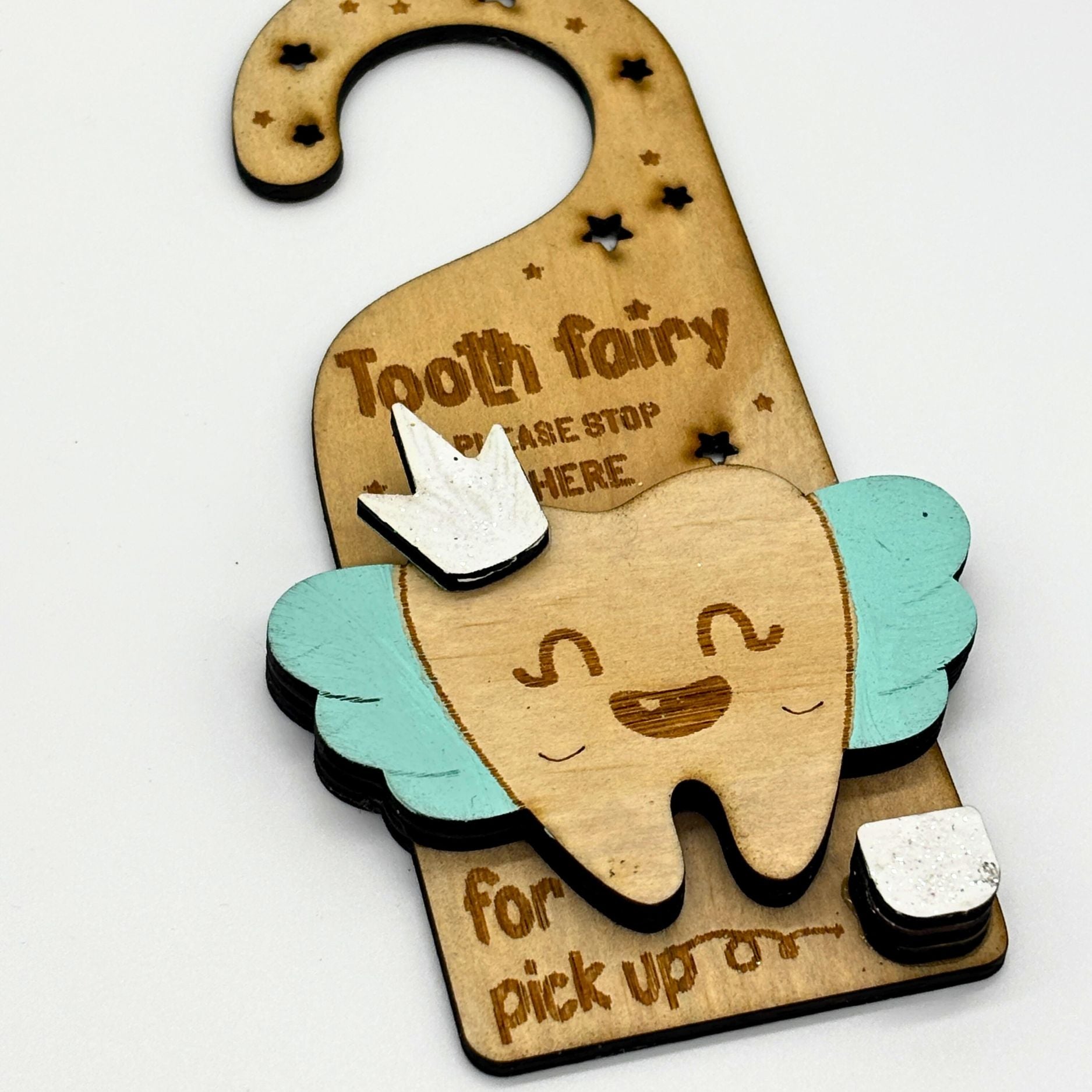✨ Available in multiple fun designs, each hanger is handcrafted with attention to detail, laser-engraved, and features a small slot to securely hold the precious tooth, ready for the fairy's visit.