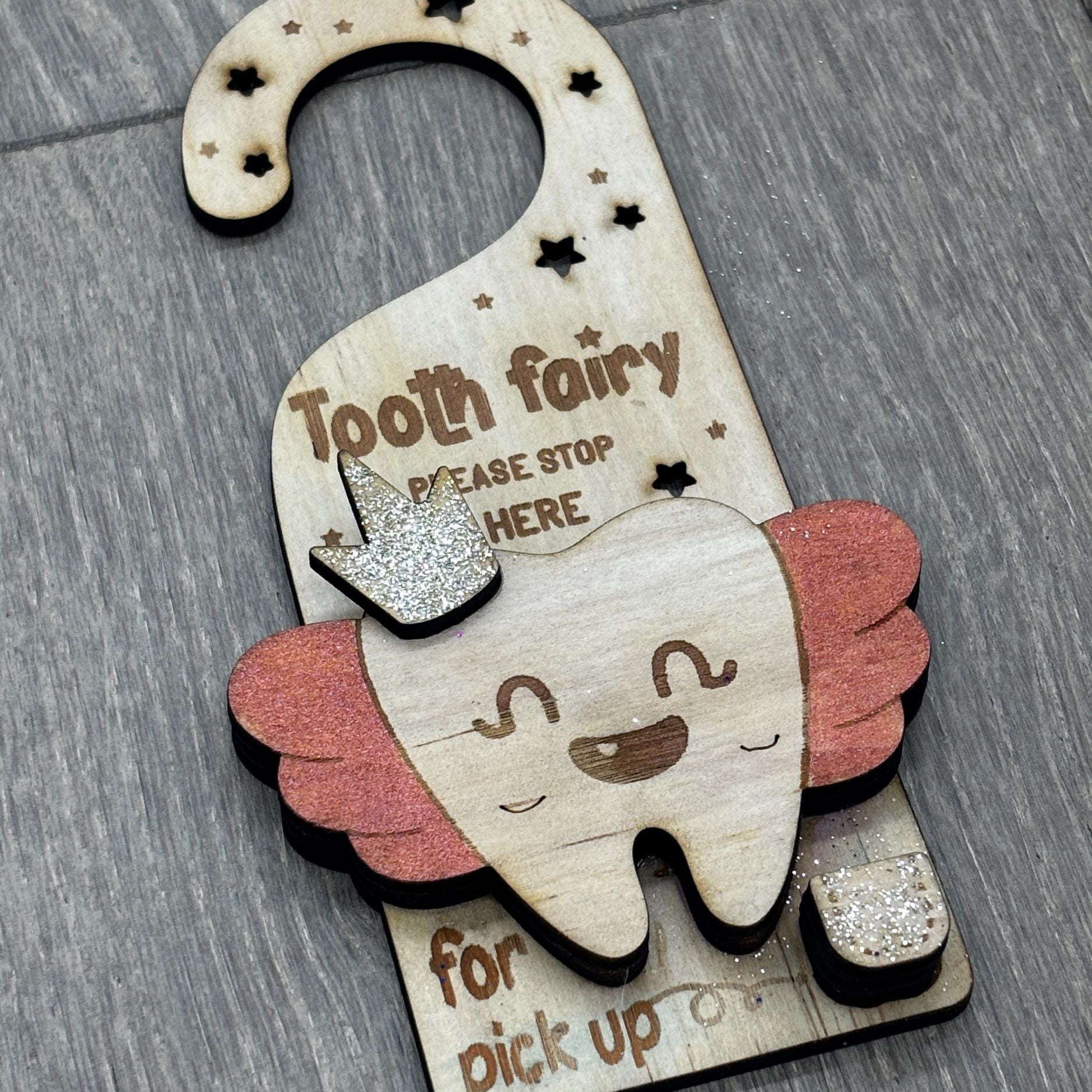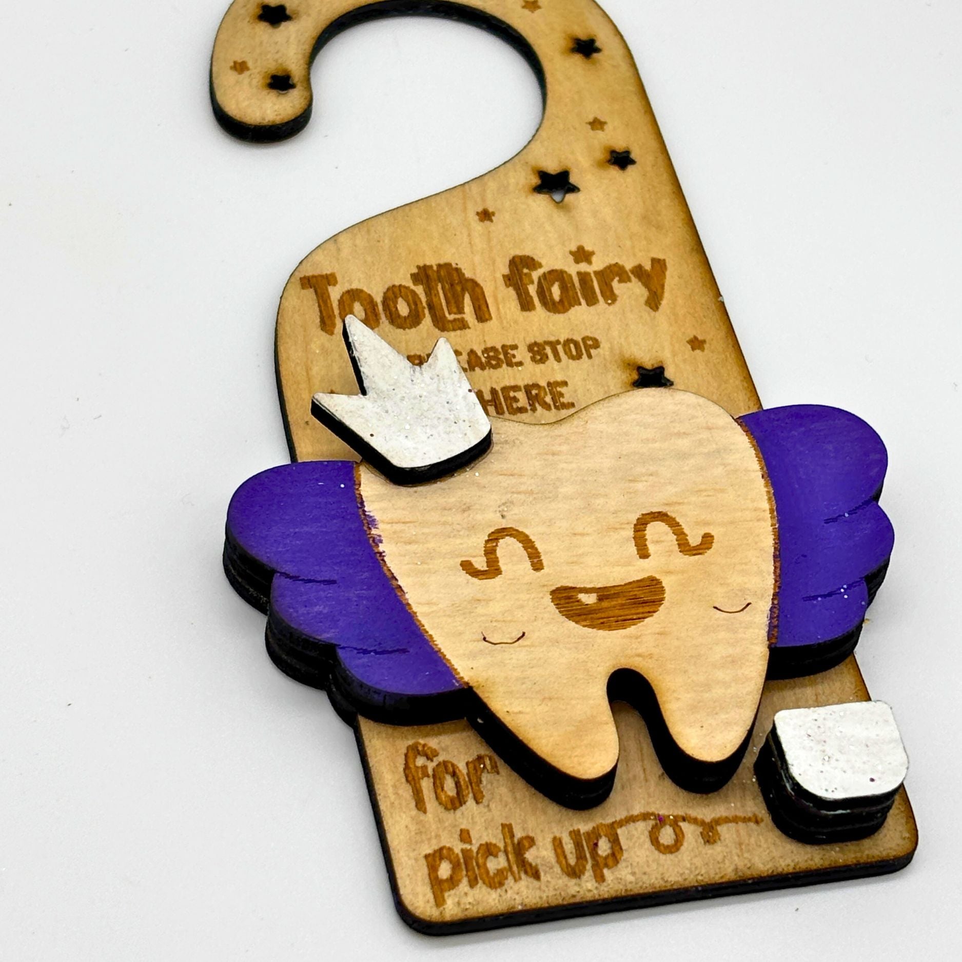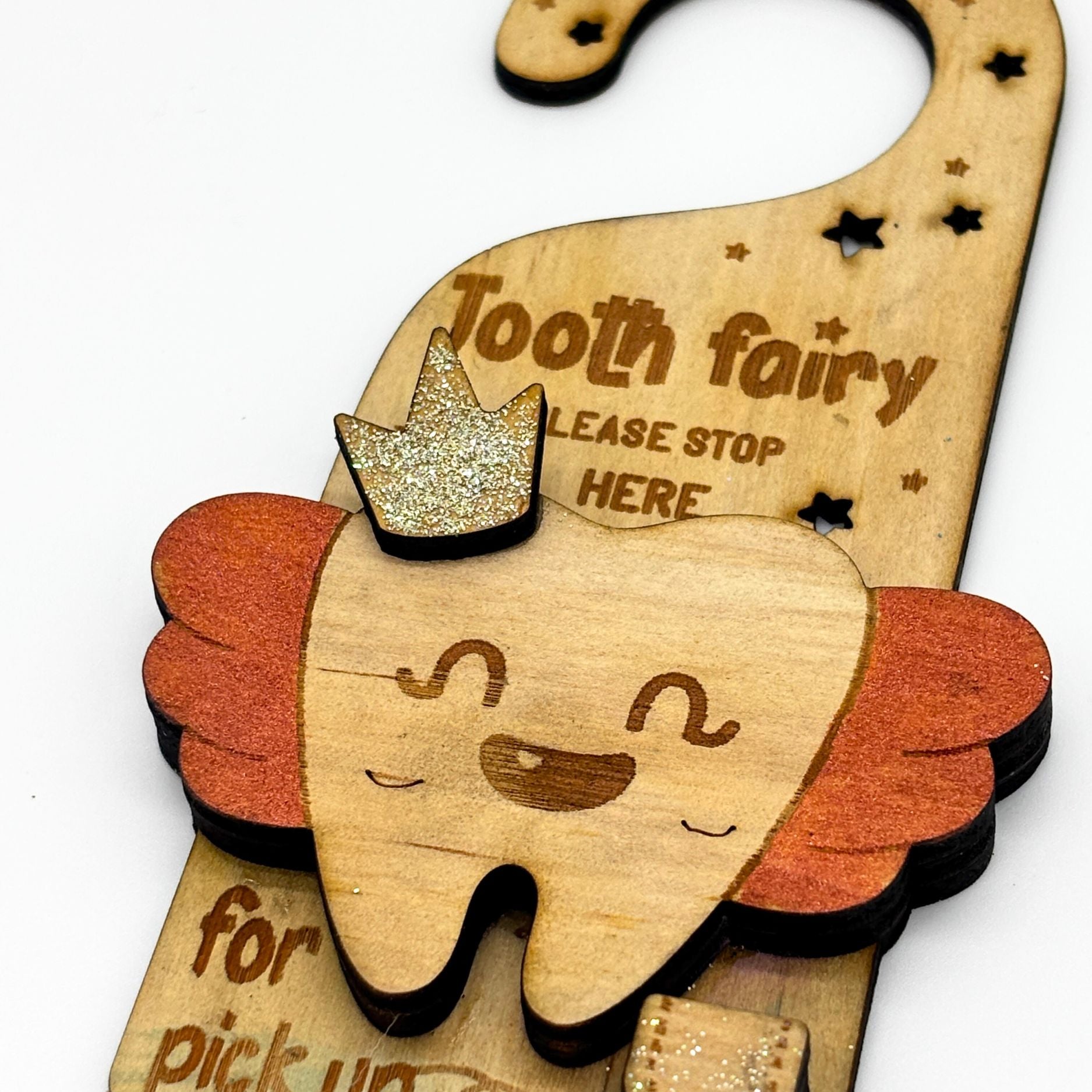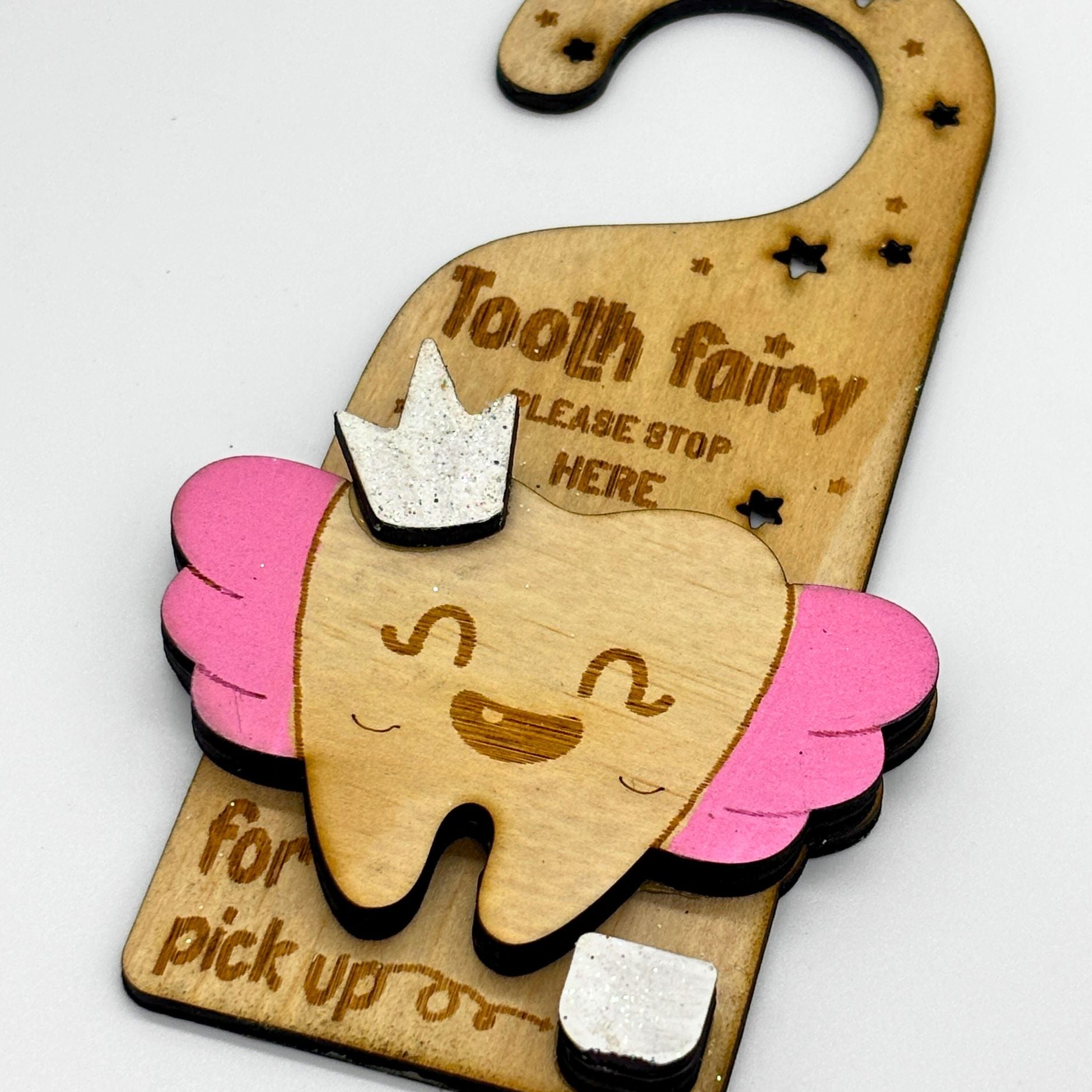 ✨ Available in multiple fun designs, each hanger is handcrafted with attention to detail, laser-engraved, and features a small slot to securely hold the precious tooth, ready for the fairy's visit.