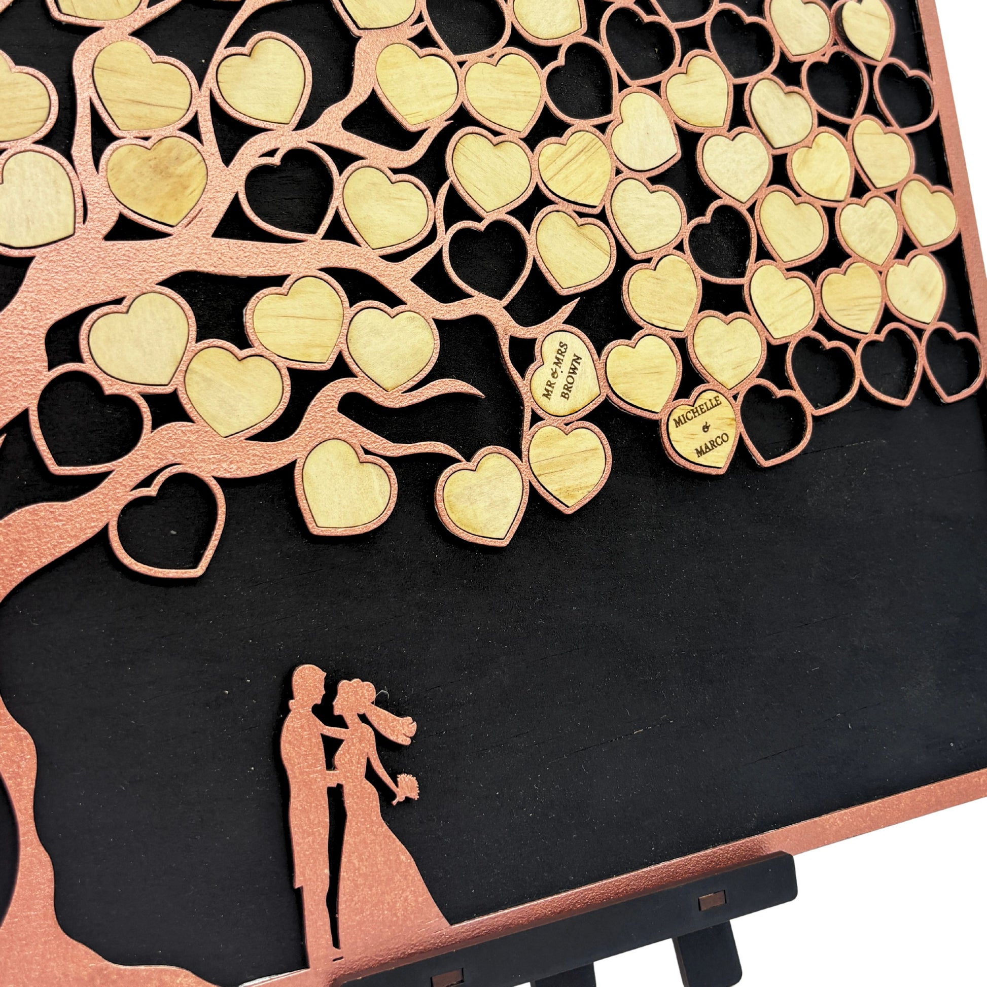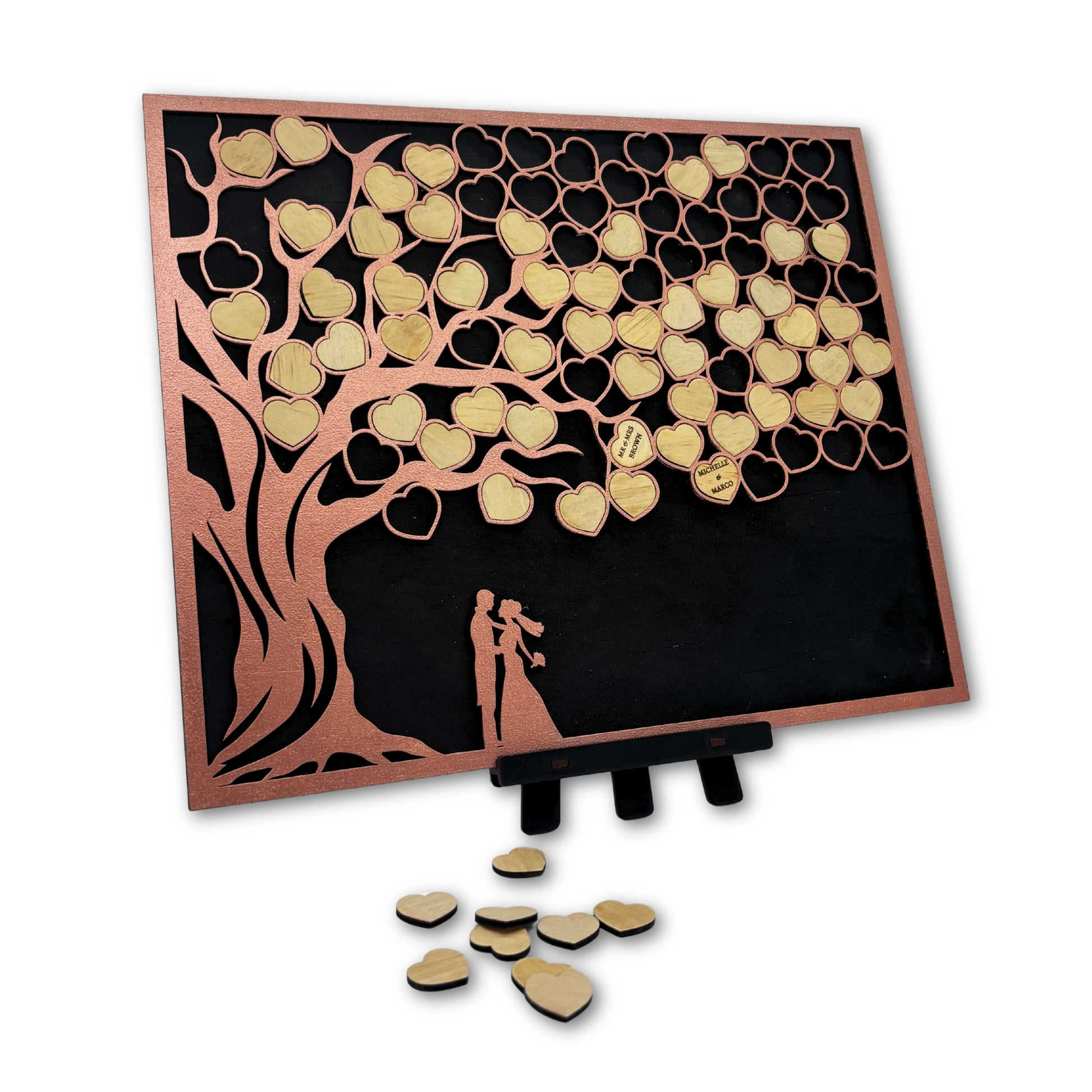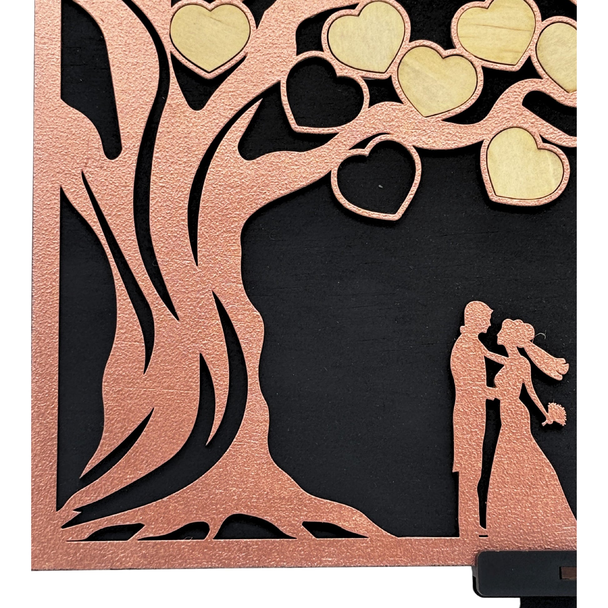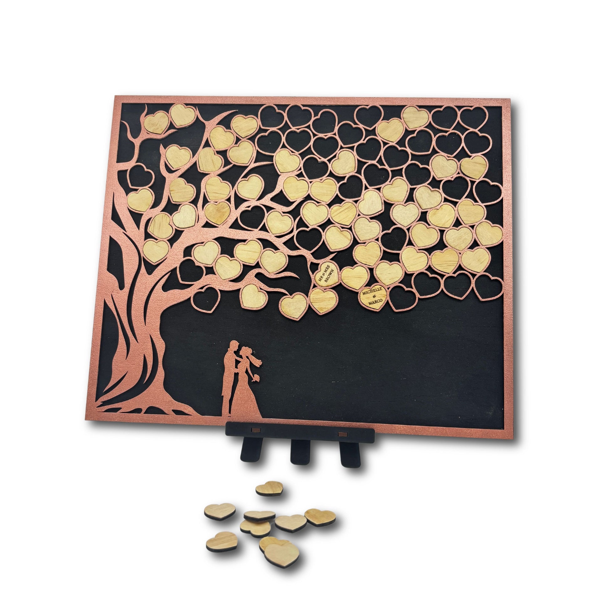Celebrate love in a timeless and artistic way with this elegant Wooden Wedding Guest Book Tree. Designed as a romantic alternative to traditional guest books, this handcrafted piece features a beautifully detailed tree silhouette with heart-shaped leaves that your guests can sign and drop into place.