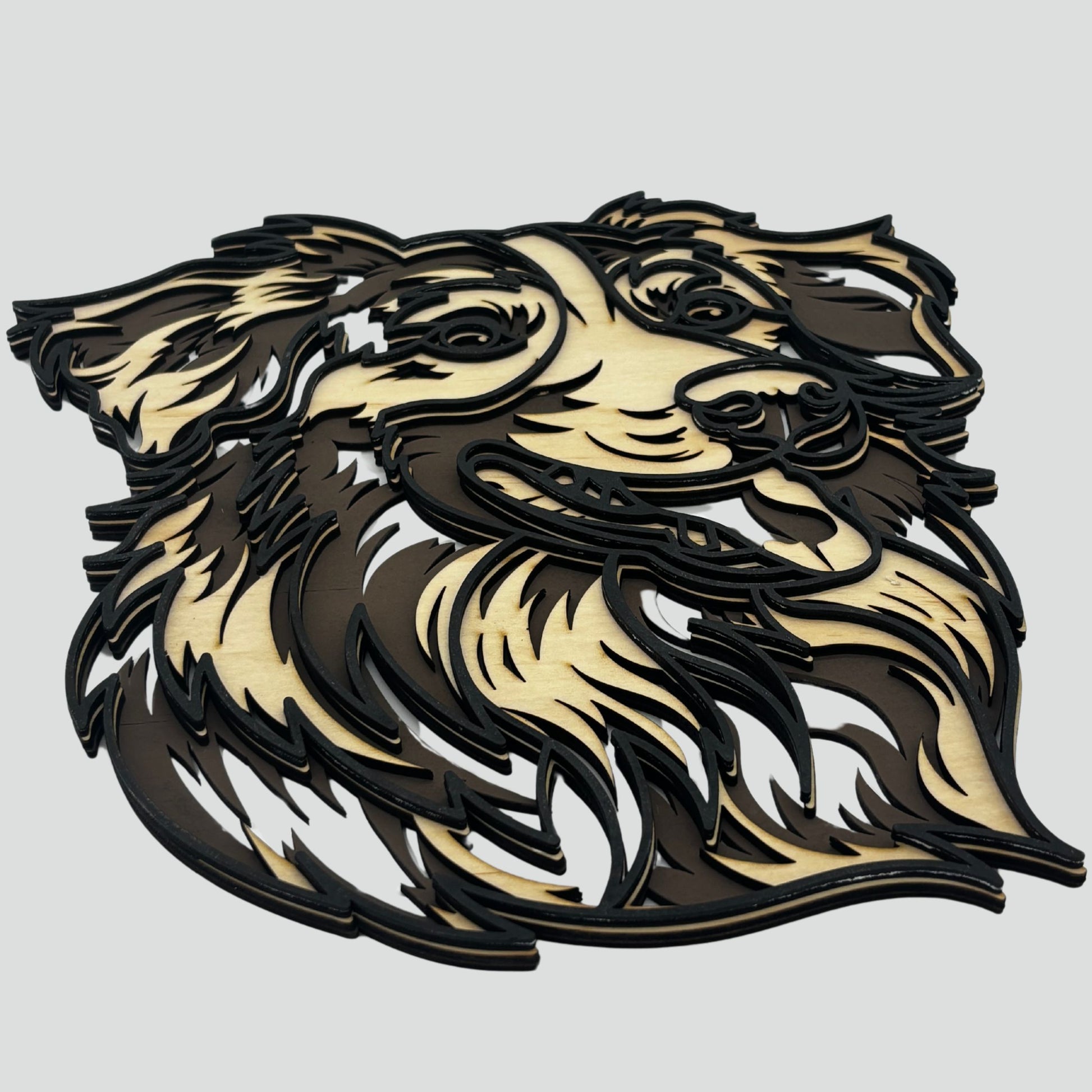 Celebrate the charm and loyalty of man’s best friend with this stunning Hand-Painted Wooden Dog Wall Art, featuring a joyful Australian Shepherd. Expertly crafted from layered plywood and finished by hand, this piece captures the spirited personality and intelligent gaze of this beloved breed with extraordinary detail.