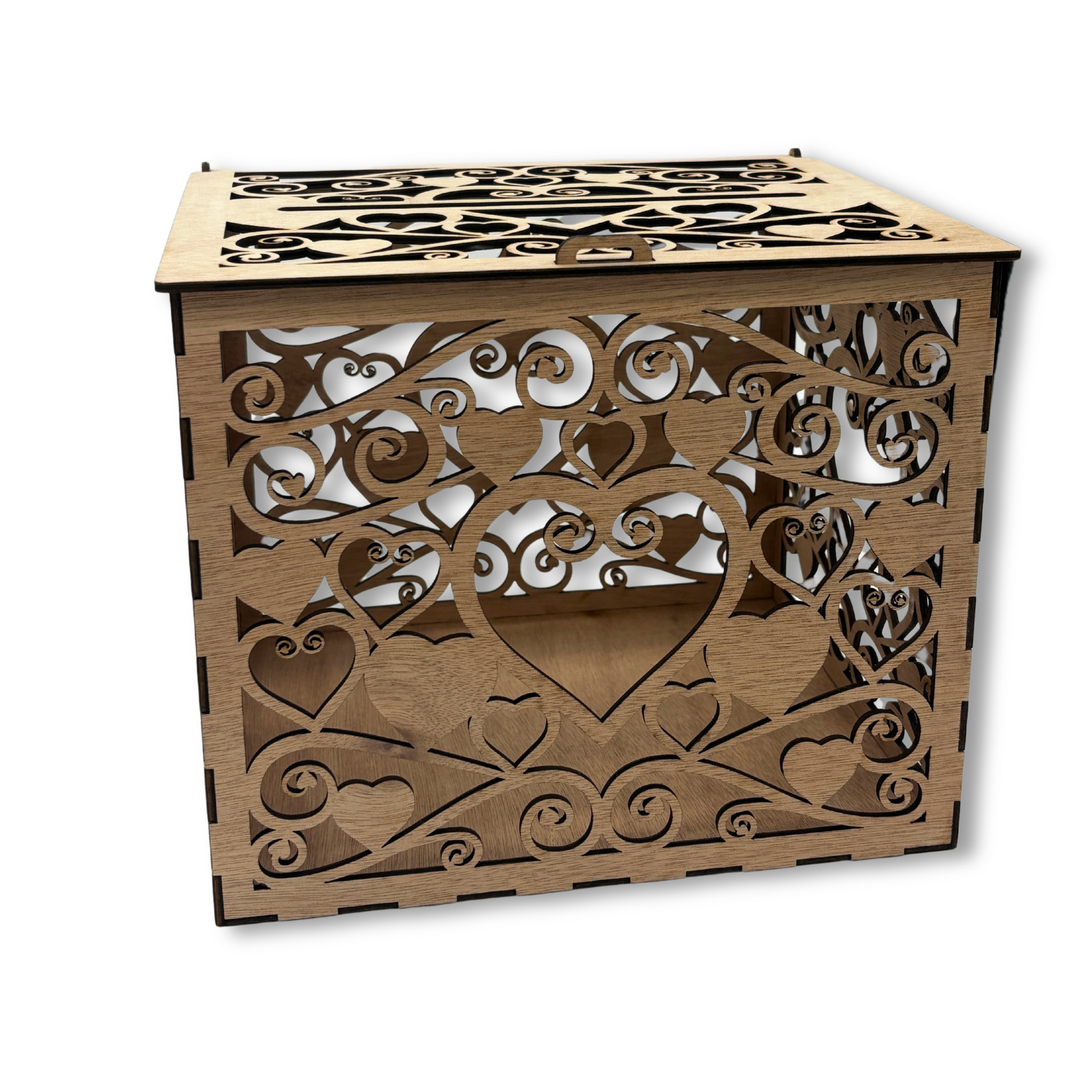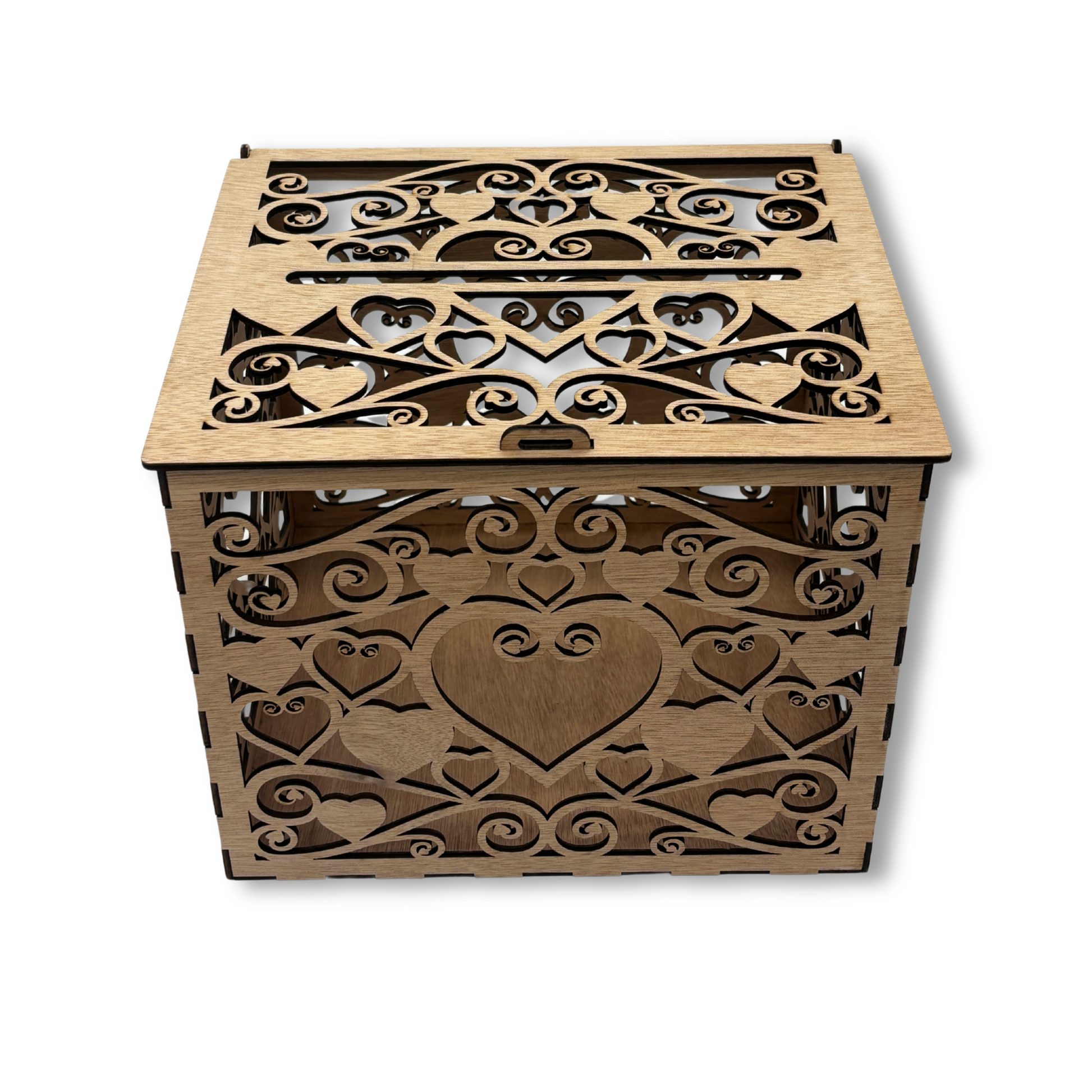Make your celebration unforgettable with this exquisite wooden card box – a perfect blend of beauty and function.